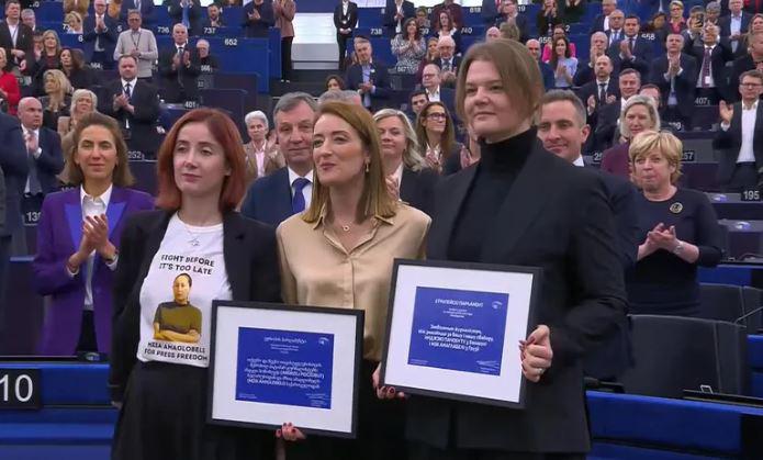 ევროპარლამენტში სახაროვის პრემიის გამარჯვებულების, პატიმრობაში მყოფი ჟურნალისტების - „ნეტგაზეთისა“ და „ბათუმელების“ დამფუძნებლის, მზია ამაღლობელისა და ბელარუსი ჟურნალისტის, ანდჟეი პოჩობუტის დაჯილდოების ცერემონია გაიმართა.
