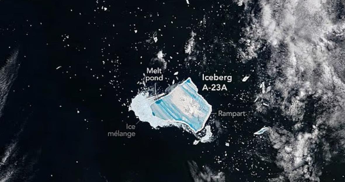 აისბერგი, სახელწოდებით - A-23A, ანტარქტიდის ფილხნერის შელფურ მყინვარს 1986 წელს გამოეყო და მას შემდეგ ატლანტიკის ოკეანეში დაცურავს.