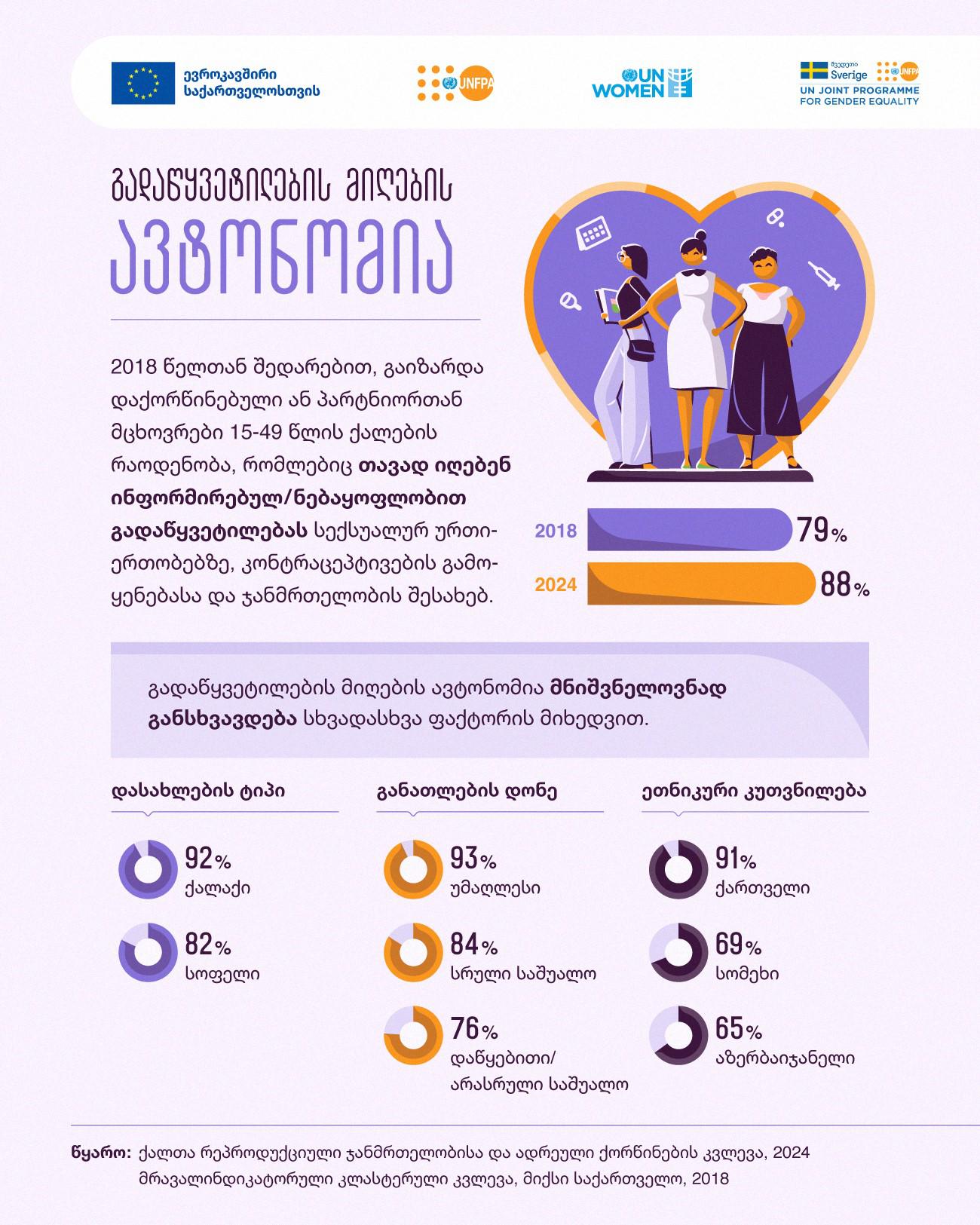 მიუხედავად იმისა, გასულ წლებში რეპროდუქციულ საკითხებთან დაკავშირებით ცნობიერება მნიშვნელოვნად ამაღლდა და კანონმდებლობაც, ბოლო ათწლეულებია ადამიანის უფლებების საერთაშორისოდ აღიარებულ სტანდარტებს მოერგო, არსებული ვითარება ცხადყოფს, რომ კვლავ დაბალია ხელმისაწვდომობა რეპროდუქციული ჯანმრთელობის უსაფრთხო სერვისებზე, მათ შორის უსაფრთხო აბორტზე. ამას ადასტურებს კვლევაც. კერძოდ, საქართველოს სტატისტიკის ეროვნული სამსახურის მიერ გაეროს მოსახლეობის ფონდის (UNFPA), ევროკავშირის წარმომადგენლობისა და შვედეთის მთავრობის მხარდაჭერით ჩატარებული გამოკვლევის თანახმად, გამოკითხულ ქალთა 4.8%-მა ხელოვნური აბორტის პროცედურა სამედიცინო დაწესებულების გარეთ ჩაიტარა. ანგარიში მოიცავს 2024 წლის ივნისი-ივლისის პერიოდს და მასში 15-49 წლის 4500 ქალი მონაწილეობდა. მრავალინდიკატორული კლასტერული კვლევის მიხედვით, ეს მონაცემი 2018 წელს 6,7% იყო.