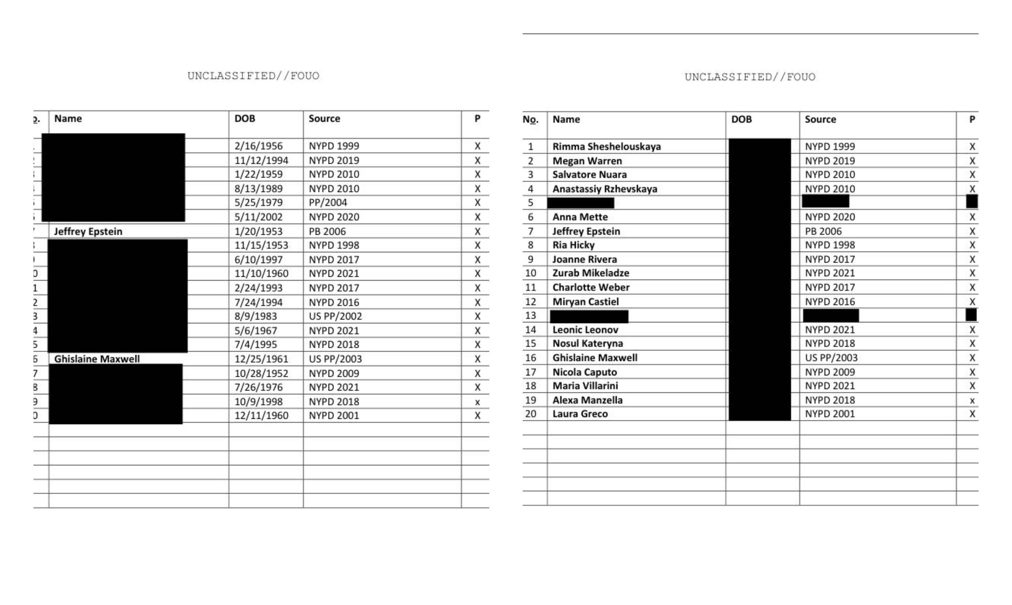the guardian-ის ცნობით, ჯერჯერობით უცნობია ვინ არის სიაში მოყვანილი ბოლო სამი ადამიანი ან რა კავშირები აქვთ მათ ეპშტეინთან.