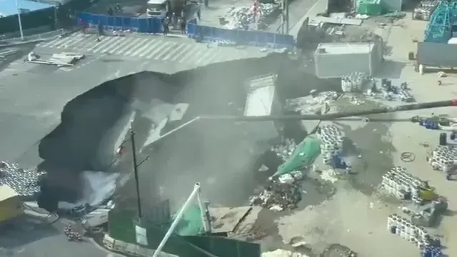 ჩინეთში, ჩანხაიში გზის უზარმაზარი მონაკვეთი ჩავარდა, რის შედეგად ახლომდებარე შენობები დაზიანდა.