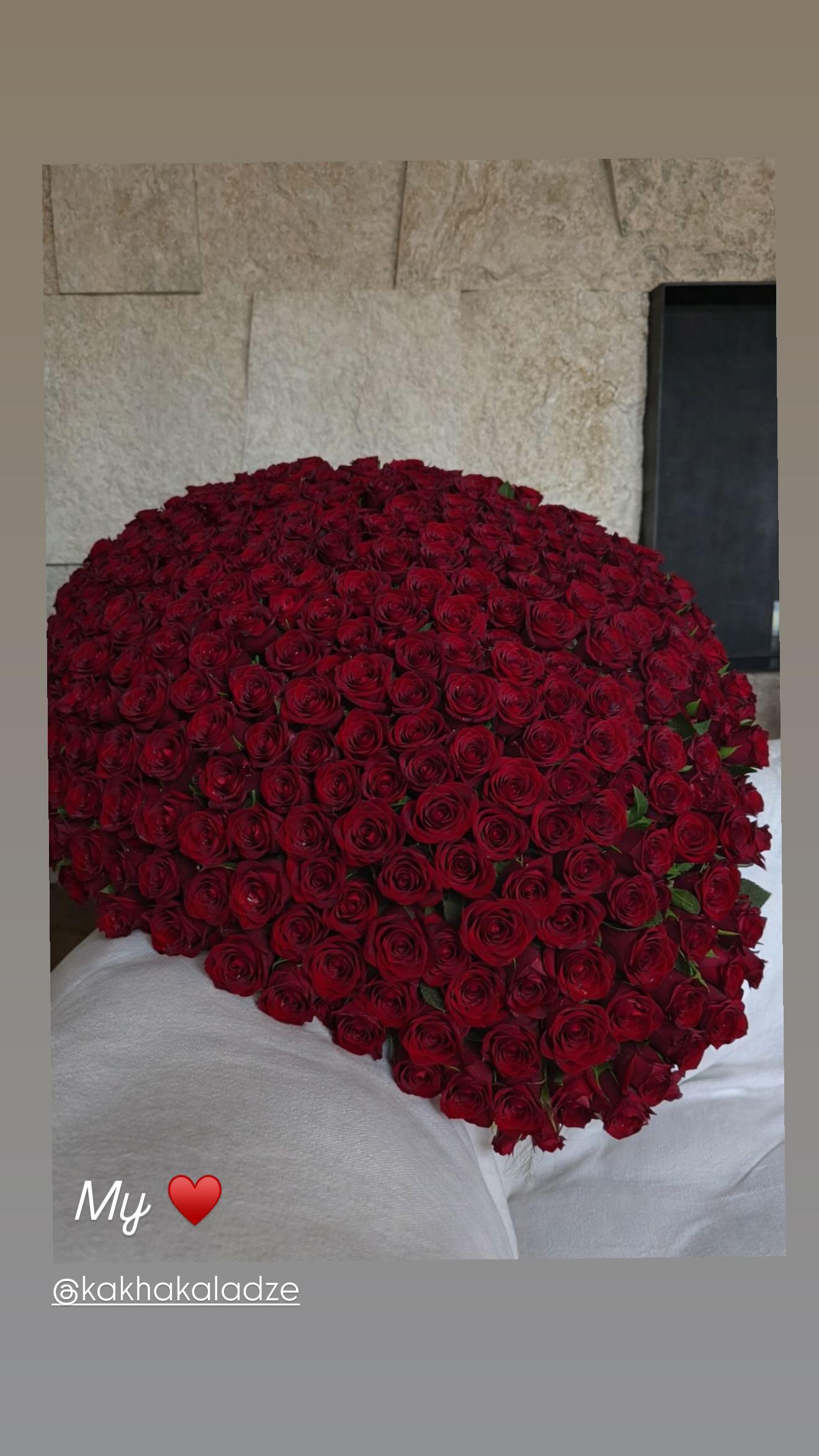 რომანტიული საღამო გიგანტურმა ვარდების თაიგულმა დააგვირგვინა. ერთ-ერთ ფოტოზე კი თბილისის მერი გულის ფორმის წითელი ბუშტებით დგას.