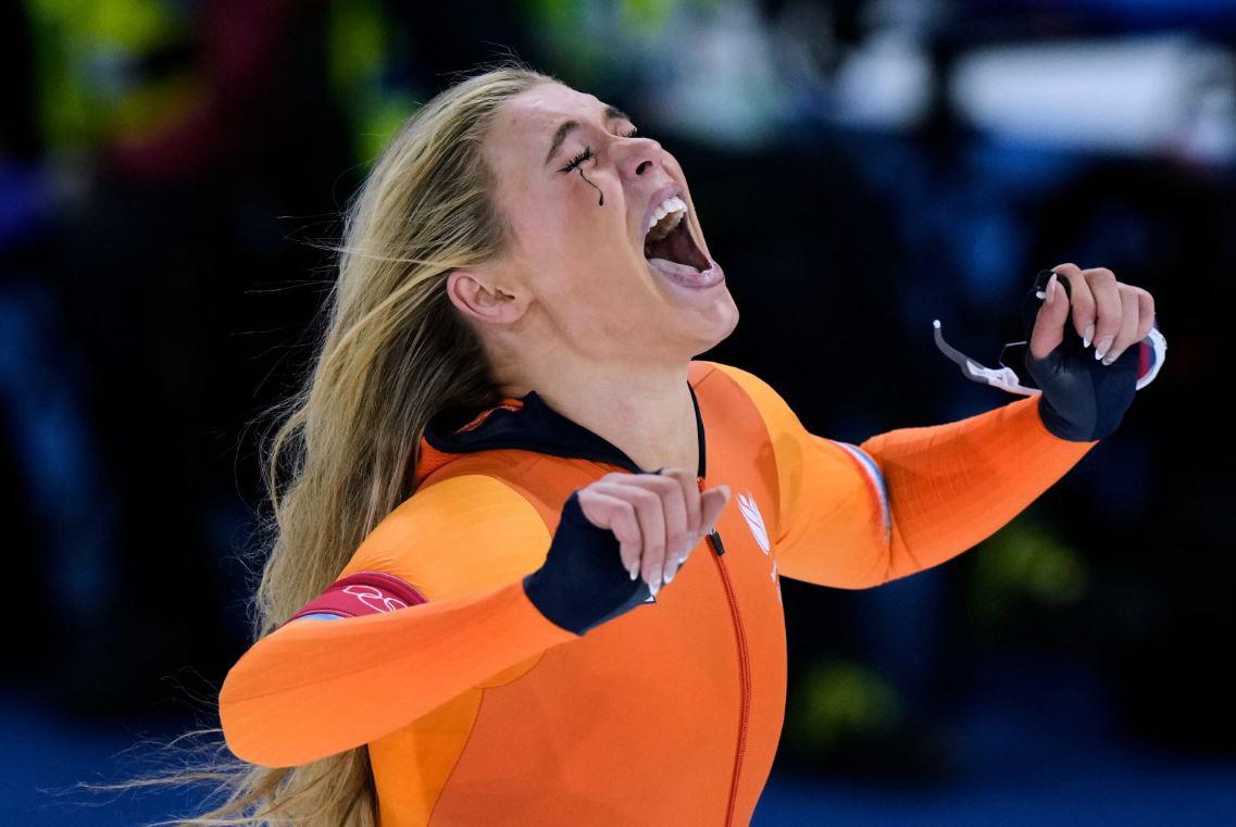 ჰოლანდიელი მოციგურავე იუტა ლირდამი 1000 მეტრზე ოლიმპიური რეკორდის დამყარების შემდეგ. მან რბოლა 1:12.31 წამში დაასრულა.