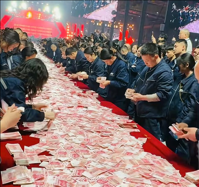 ზეიმს დაახლოებით 7 000 ადამიანი დაესწრო, აღნიშნული ინიციატივა კომპანიის ხელმძღვანელს, ცუი პეიძუნს ეკუთვნის, რომელიც აქციების 98.88 %-ს ფლობს. სწორედ მისი იდეა იყო რომ თანხის პირდაპირ ანგარიშებზე ჩარიცხვის ნაცვლად, რაც, მისი თქმით, "უბრალოდ, ცარიელ ციფრებს წარმოადგენს“, ბონუსები უჩვეულო მეთოდით გაეცათ.