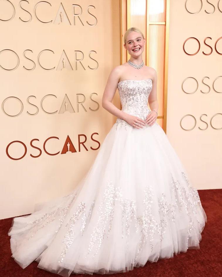 ელ ფანინგმა Givenchy-ს საოცარი კაბითა და 1903 წლის ვინტაჟური ბრილიანტის ყელსაბამით სამეფო იერი შექმნა.
