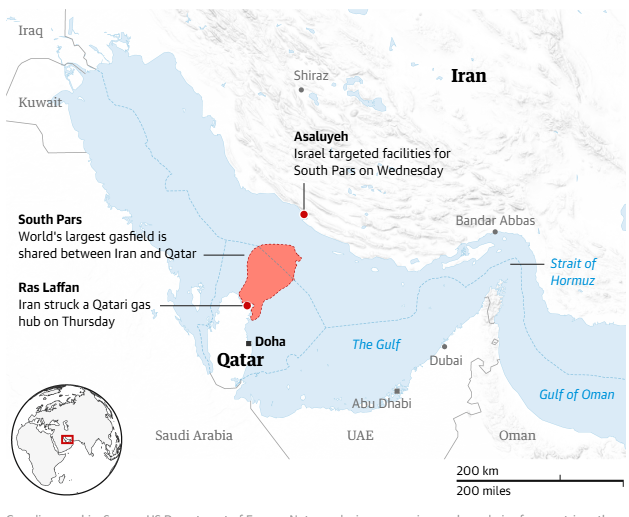 ირანმა გააძლიერა სპარსეთის ყურის არაბულ ქვეყნების ენერგეტიკულ ობიექტებზე თავდასხმები მას შემდეგ, რაც ისრაელმა ოთხშაბათს ირანის უდიდესი ბუნებრივი გაზის საბადო “სამხრეთ პარსი“ დაბომბა.