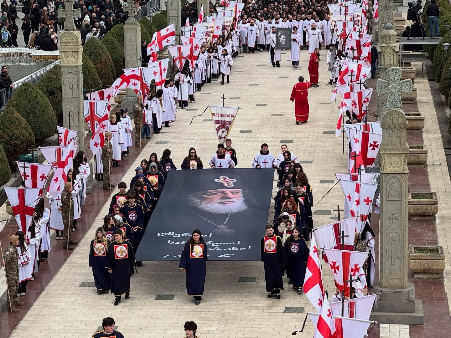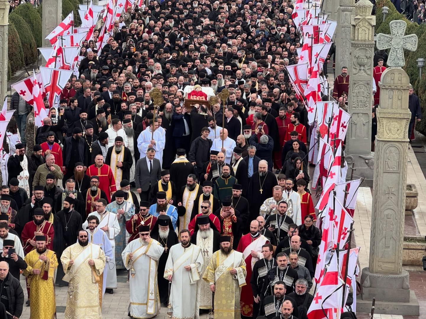 პატრიარქი სამების ტაძრიდან სიონის საპატრიარქო ტაძრისკენ მსვლელობით გადაასვენეს. “გვიყვარხარ პატრიარქო“ - სწორედ ამ შეძახილების და ტაშის ფონზე გამოასვენეს პატრიარქი სამების საკათედრო ტაძრიდან. სამებიდან სიონის ტაძრის მთელ პერიმეტრზე განლაგებული იყვნენ სამხედრო მოსამსახურეები, რომლებსაც ხელში საქართველოს დროშები ეჭირათ.