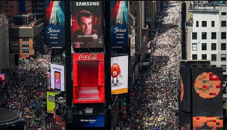 ათასობით ადამიანმა ასევე შეავსო თაიმს-სკვერი ნიუ-იორკში.