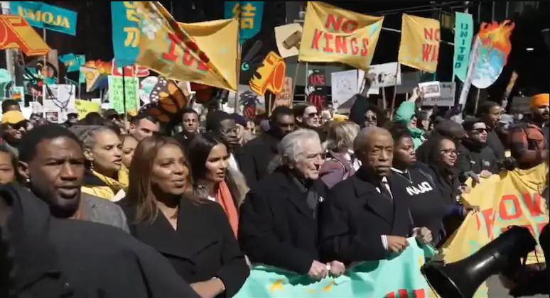 “დროა, მეფეებს უარი ვუთხრათ! დროა, დონალდ ტრამპს უარი ვუთხრათ. საკმარისია! აღარც მეფე ტრამპი, აღარც ზედმეტი ომები, რომლებიც ჩვენს რესურსებს ძარცვავენ, ჩვენს მამაც ჯარისკაცებს სწირავენ და უდანაშაულოებს კლავენ. აღარც კორუმპირებული ლიდერი, რომელიც საკუთარ თავს და ეპშტეინის თანამოაზრეებს ამდიდრებს. აღარც ჩვენი ყველაზე დაუცველი მეზობლებისთვის ჯანდაცვის ჩამორთმევა, აღარც მიუწვდომელი საკვები, აღარც მიუწვდომელი ენერგია, აღარც მიუწვდომელი საცხოვრებელი და აღარც ინფლაცია COVID-19-ის შემდეგ ყველაზე მაღალ დონეზე. აღარც ნიღბიანი მთავრობის ბანდიტები, რომლებიც ჩვენს მეზობლებს ქუჩებში ესვრიან, აღარ გვინდა", - განაცხადა დე ნირომ.