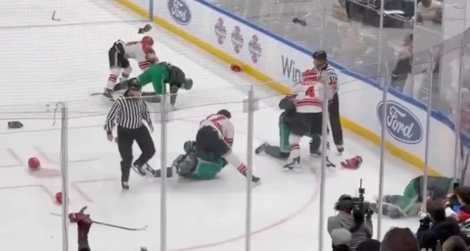 პირველი რაუნდის დაწყებიდან დაახლოებით რვა წუთში ანგარიში გათანაბრდა, რის შემდეგაც მოედანზე დაძაბულობა გაიზარდა. დაპირისპირებაში ორივე გუნდის მოთამაშეები ჩაერთნენ, რის შედეგადაც ვითარება კიდევ უფრო დაიძაბა და მოედანზე მასობრივი დაპირისპირება დაიწყო.