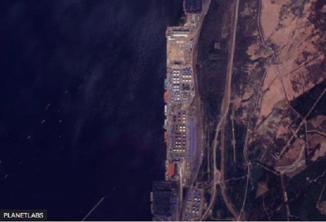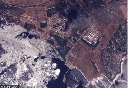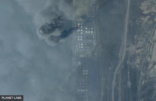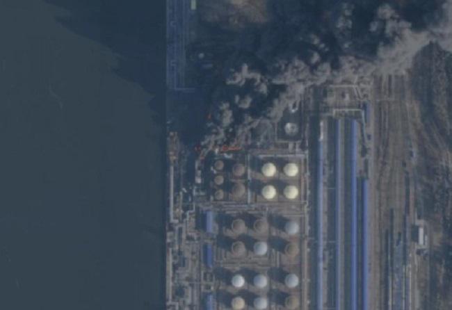 27 მარტით დათარიღებულმა სატელიტურმა სურათმა დააფიქსირა კვამლი, რომელიც უკრაინული თავდასხმის შემდეგ პორტ უუსტ-ლუგას თავზე ადიოდა.