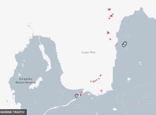 უუსტ-ლუგაში ჩანს, რომ ტანკერები და სხვა გემები ამჟამად ღუზაზე დგანან.