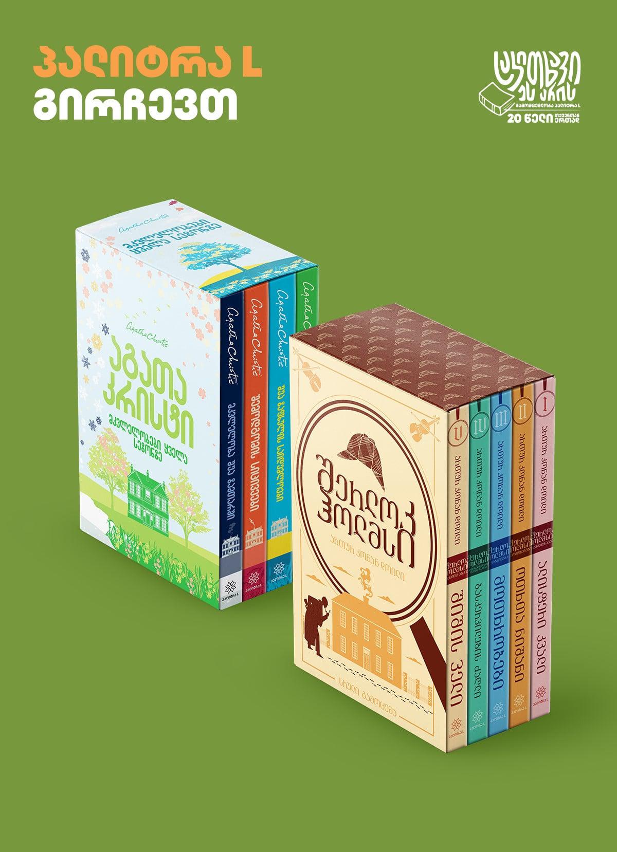 „პალიტრა L“ დეტექტივის მოყვარულებს განსაკუთრებულ საჩუქარს უმზადებს: ართურ კონან-დოილისა და აგათა კრისტის რჩეული ნაწარმოებები თემატურ, საკოლექციო ყუთებში გაერთიანდა. ეს სპეციალური გამოცემები იდეალური შანსია, რომ მსოფლიო დეტექტივის კლასიკოსები თქვენს თაროზე განსაკუთრებული ფორმით დააბინავოთ.