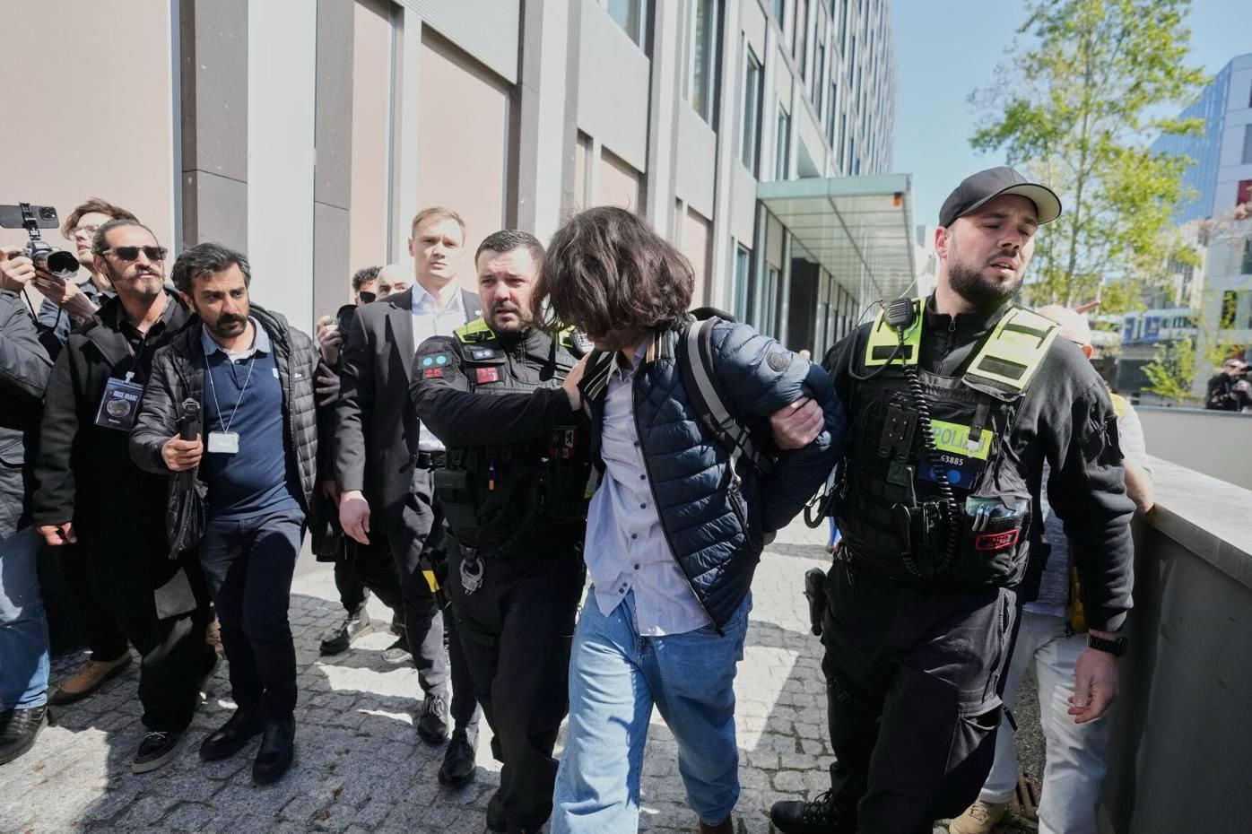 ირანის უკანასკნელი შაჰის ქვეყნიდან განდევნილი ვაჟი, გერმანიაში ვიზიტით იმყოფებოდა, რა დროსაც მას აქტივისტი დაუპირისპირდა.