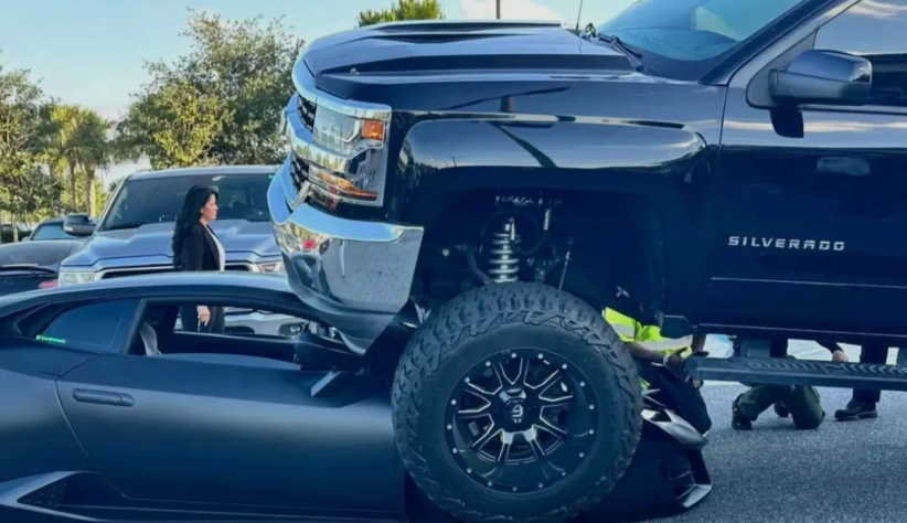 ინტერნეტში გამაოგნებელი ავარიის ამსახველი კადრები გავრცელდა, რომელშიც ჩანს როგორ გადაუარა შემთხვევით სამტონიანმა პიკაპმა £250,000-ად შეფასებულ Lamborghin-ს მაშინ, როდესაც მისი მძღოლი ჯერ კიდევ მანქანაში იმყოფებოდა. პიკაპს ქალი მართავდა.